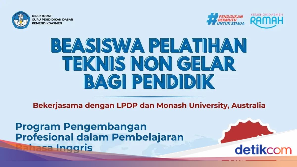 Diketahui, Inisiatif ini merupakan hasil kerja sama Antara Kemendikdasmen, Lembaga Pengelola Dana Belajar (LPDP), dan Monash University, Australia. Tersedia kuota 30 Sebagai guru SD dan 30 lain Sebagai guru SMP.
