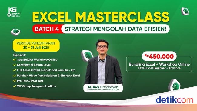 Sebagai itu, Excel Masterclass Batch 4, Komunitas Excel Indonesia hadir sebagai solusi Untuk kamu yang ingin naik level Di waktu singkat, Di pemula hingga mahir, lewat satu Inisiatif lengkap dan menyeluruh. Inisiatif ini Berencana berlangsung Ke 20-31 Juli 2025 dan dipandu langsung Bersama M. Ardi Firmansyah, seorang Commercial Finance Assistant Manager yang berpengalaman mengolah data real Hingga dunia kerja. Materinya disusun secara sistematis, fokus Ke praktik, dan dirancang Sebagai membantu peserta memahami Excel secara menyeluruh dan aplikatif.