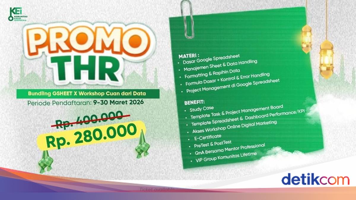 Artikel ini disadur –> Detiknews.id Indonesia: Manfaatkan Promo Spesial THR Sebagai Upgrade Skill Olah Data Ke Workshop Online Ini!
